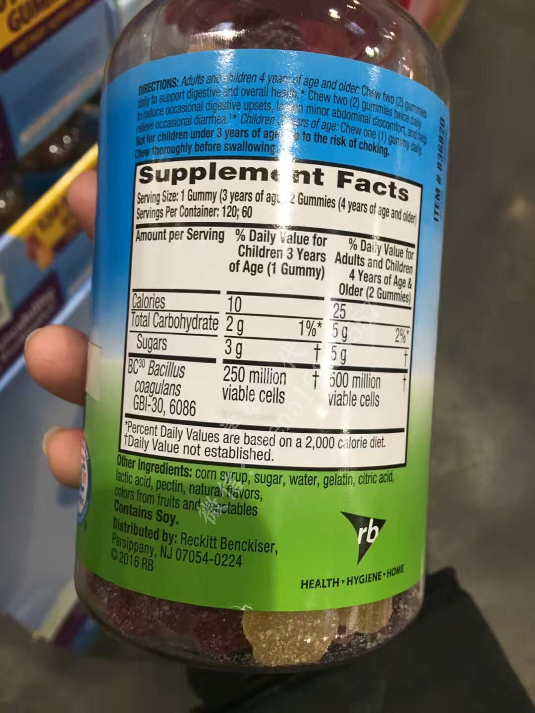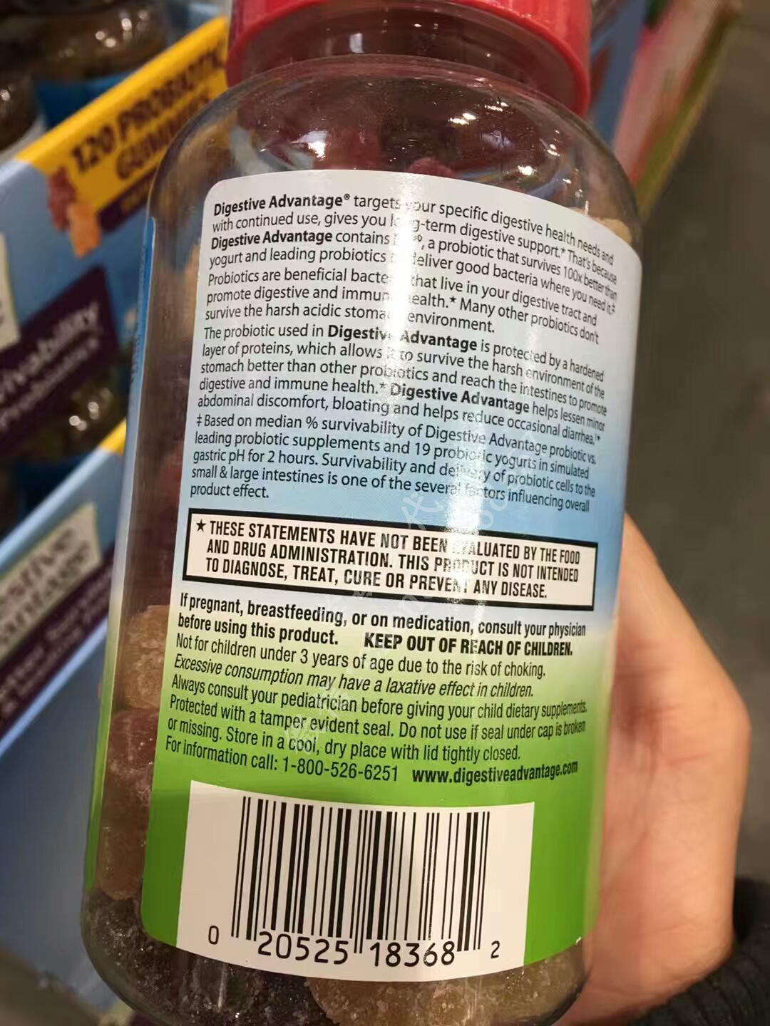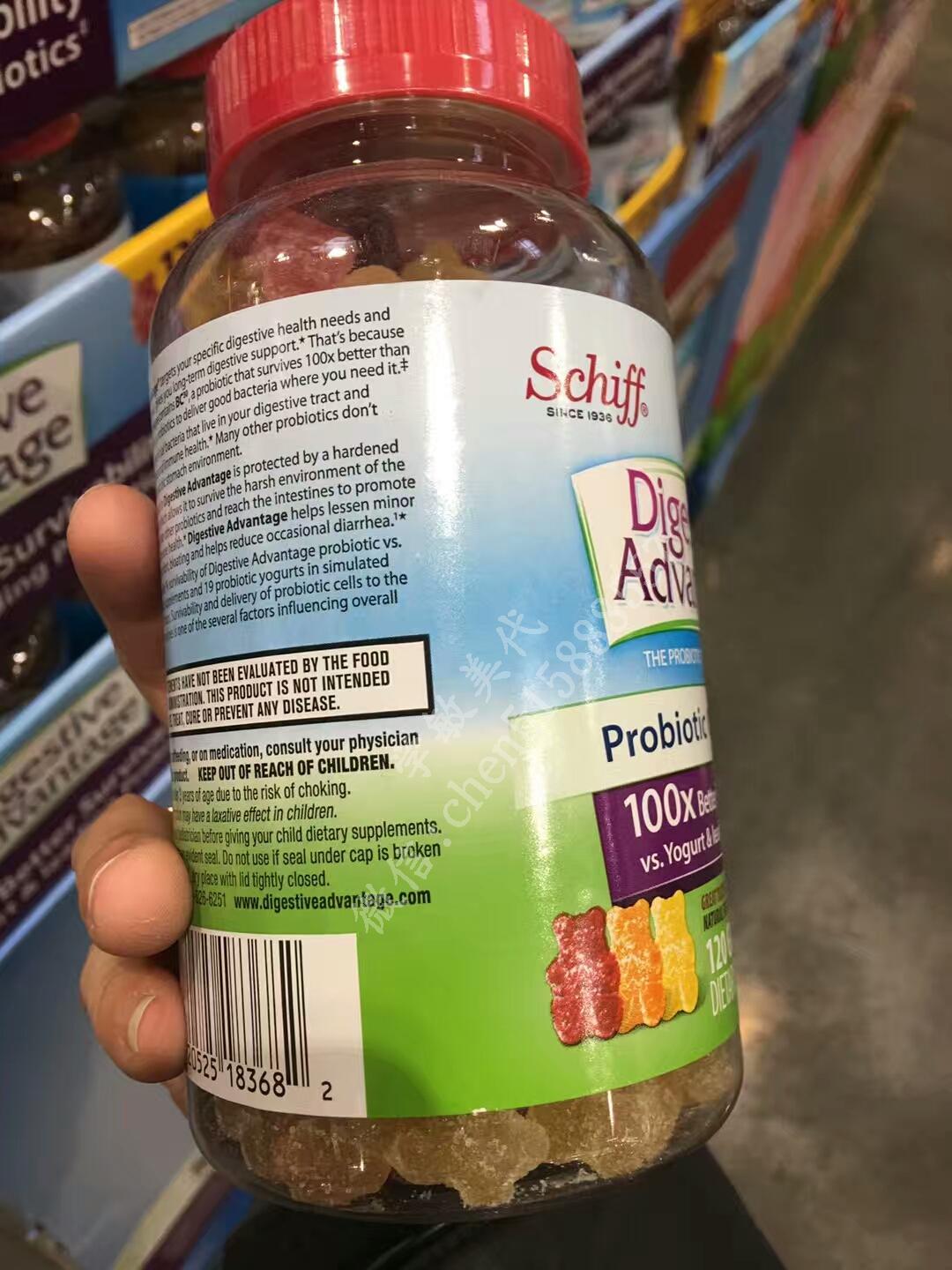 Schiff益生菌助消化软糖 Digestive Advantage120粒装,三岁以上可以吃,含嗜酸乳杆菌菌株益生菌,是酸奶的10倍以上,适用挑食和消化不良的儿童及成人,促进消化缓解便秘。可分泌消化乳糖的乳糖酶,从而缓解乳糖不耐症,帮助更好地消化所摄入食品及吸收食品中的营养成分,并抑制有害微生物进入体内,抵抗细菌病毒的感染,提升免疫。
