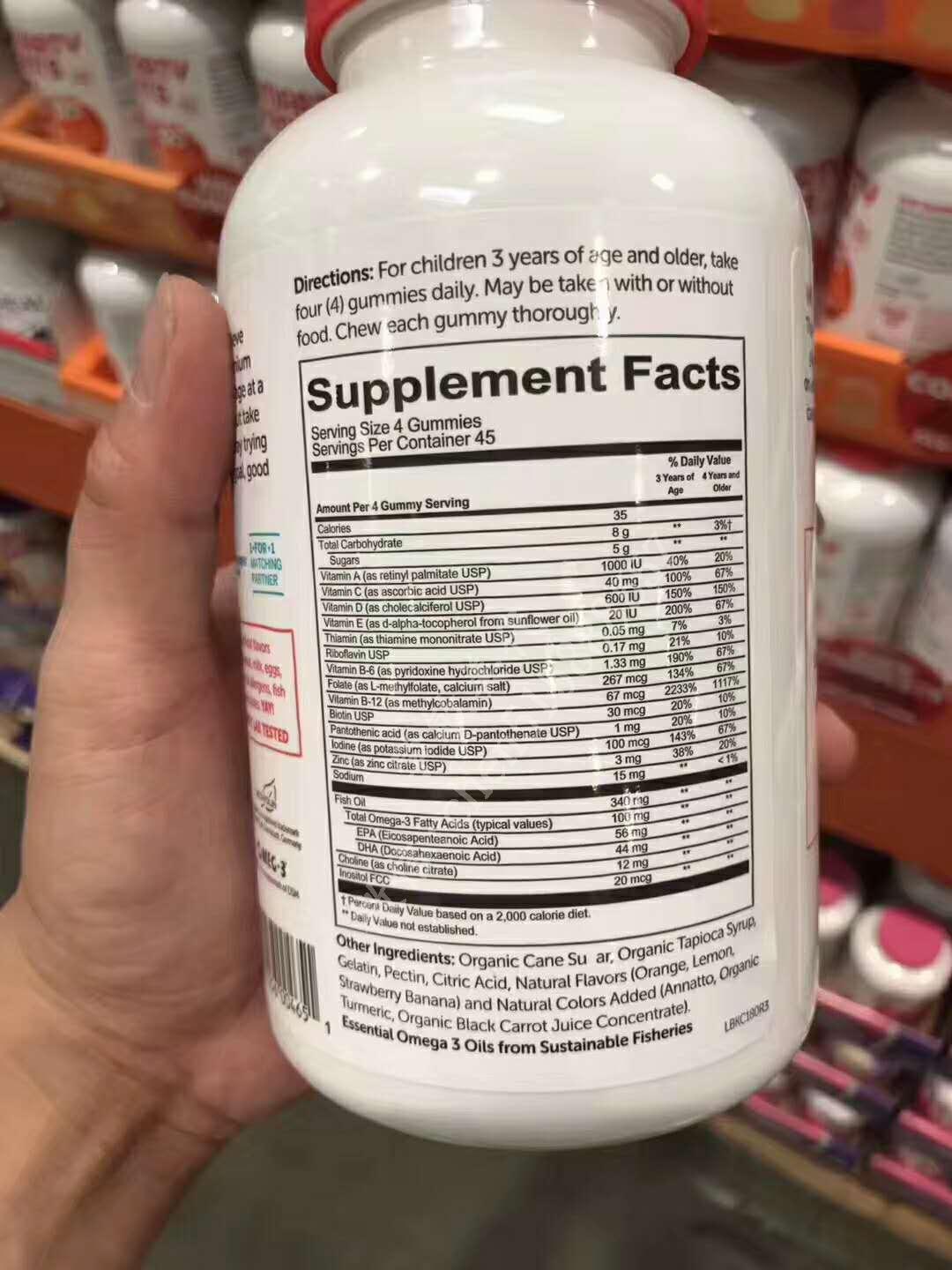 美国SmartyPants儿童复合维生素+Omega 3果味软糖,其中含有维生素A、B族、C、D、E以及锌等矿物质,帮助孩子补充每天需要的基础营养,特别提高了维生素D的含量 (600IU),为孩子迅速发育提供充足的钙质。富含DHA D3 B12 欧米伽3,针对宝宝大脑,骨骼,神经系统有帮助