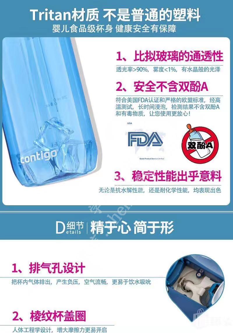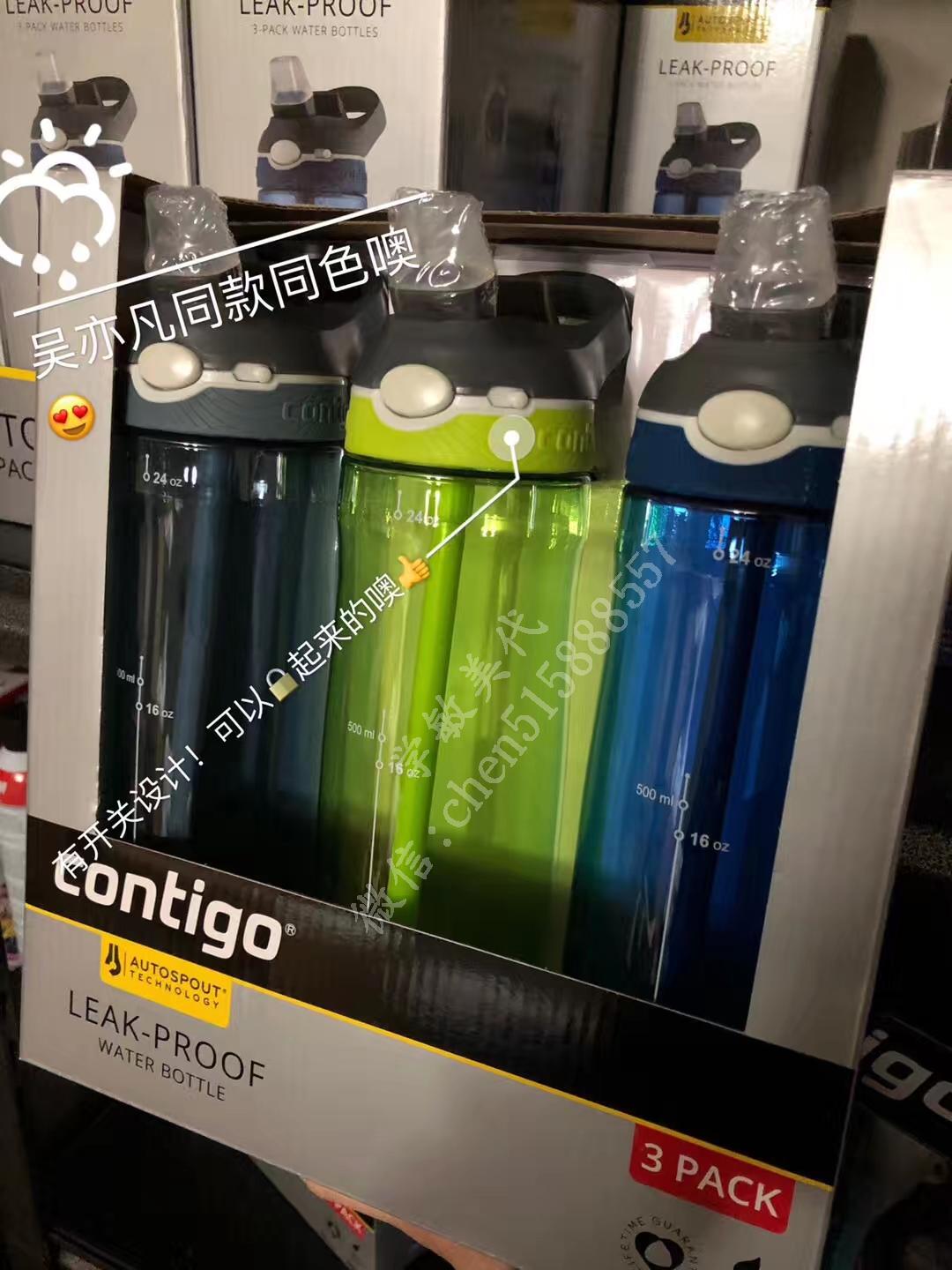 享誉世界的水杯品牌Contigo吸管大水杯!灰色是吴亦凡同款,中间的荧光绿色也超酷Cool的,一组三支装,性价比超高!北美销量第一的康迪克水杯,【大容量】大容量709ml大杯身,材质由美国Eastman公司提供100%不含BPA 化学物质,一键闭合,单手操作便利,全家适用,一组三个装