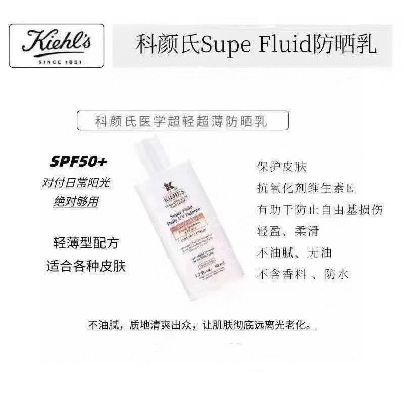 Kiehl‘s科颜氏顶级杰作,高效无油隔离防晒霜,加倍防晒SPF 50+,富含维生素E,让皮肤有效对抗紫外线,亦可加倍抵御UVA,UVB,防止皮肤晒黑,产生色斑,白色乳液质地,有淡淡香味,质地清爽不油腻。125ml特价