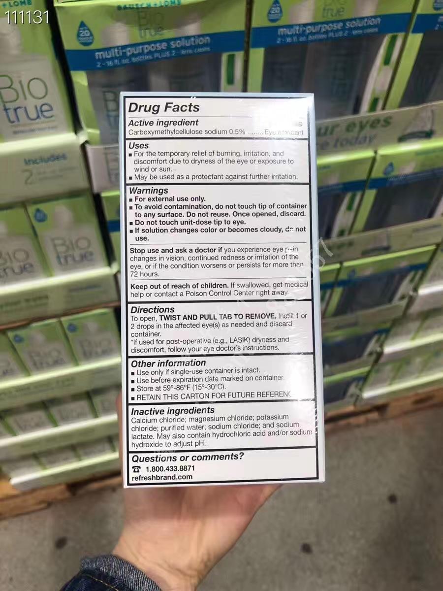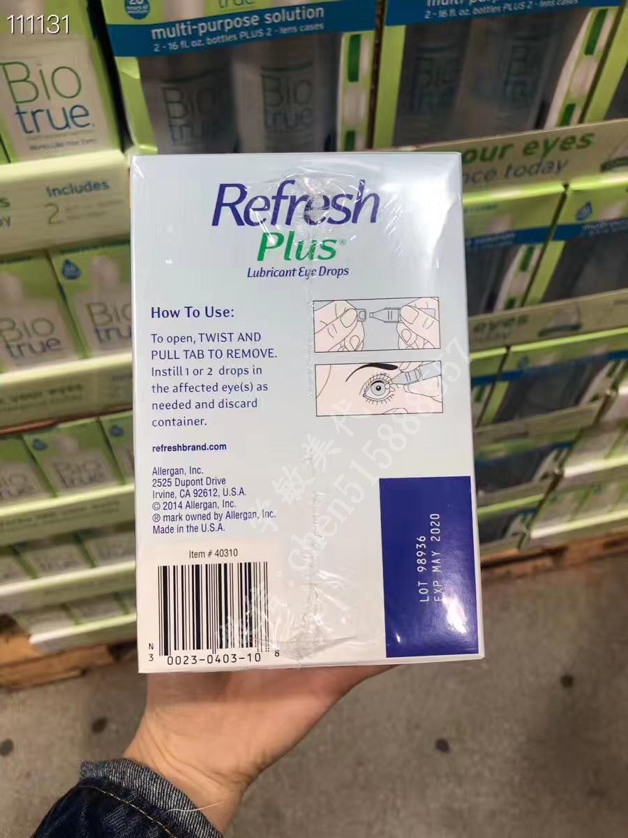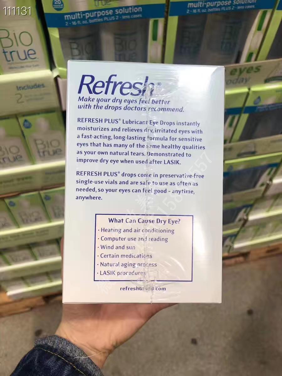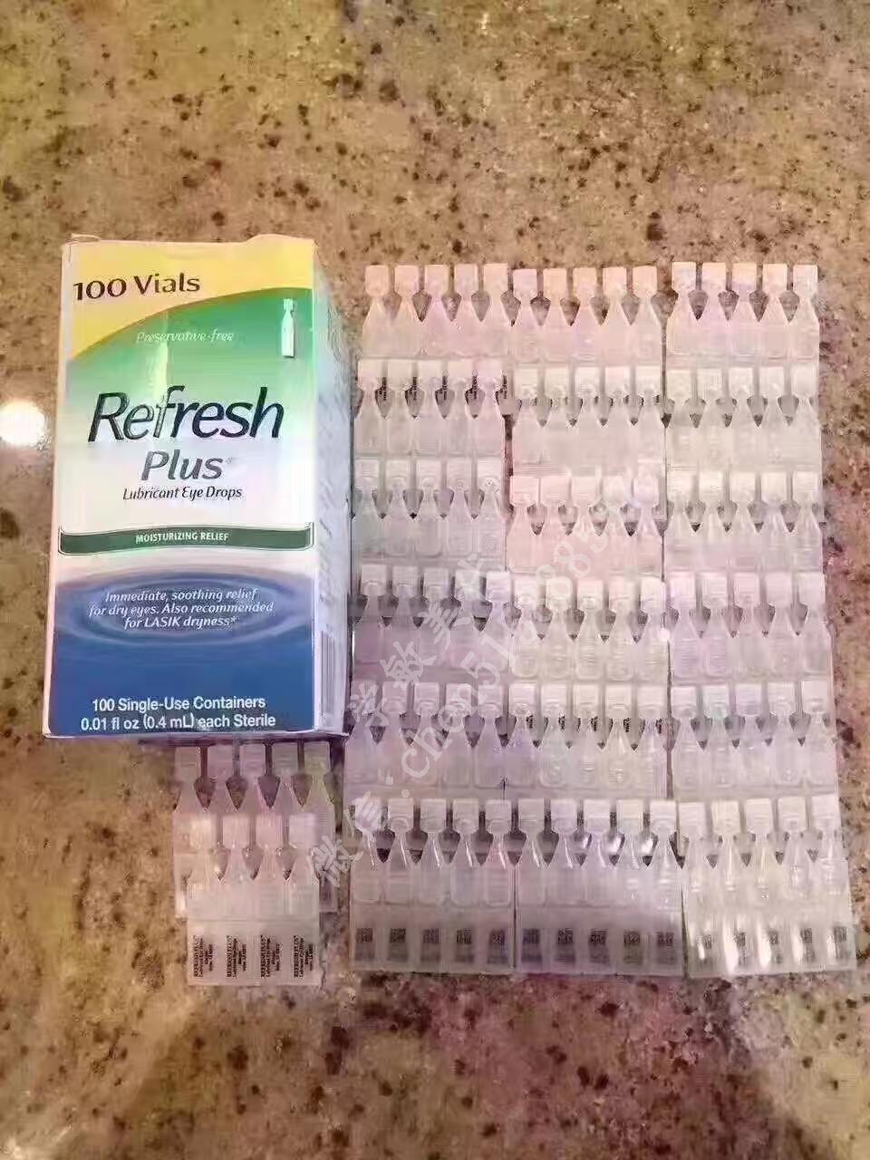 这是一款不含防腐剂的人造泪液 Refresh人工泪滴眼,每盒100小管。缓解各种原因导致眼睛发干, 发痒, 刺痛等。REFRESH PLUS润湿眼药滴液的独特配方含有如眼泪一样的健康成分, 可以帮助恢复眼睛所需要的湿润感。阿Sa也把人工泪液常伴身边,真的很好用