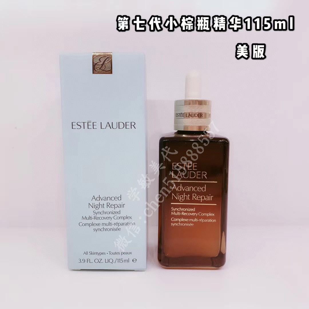 美版的Estee Lauder雅诗兰黛【第七代小棕瓶精华】科学家发现:75%的老化,源自后天影响。 创新CHRONOLUX Power Signal时钟肌因信源科技。滴滴精粹,日夜修护:日间防护,夜间修护。加速肌因修护,激发胶原新生,改善肌肤后天老化问题。 每次一滴管,愈见紧致弹润。 高渗透,更柔润。1滴管,保湿+198%。 淡纹路,更紧致。3周,加速淡纹+25%。 焕弹性,更弹润。一瓶,细腻毛孔。 美版没有出100ML的,有115ML大瓶装或者买双胞胎