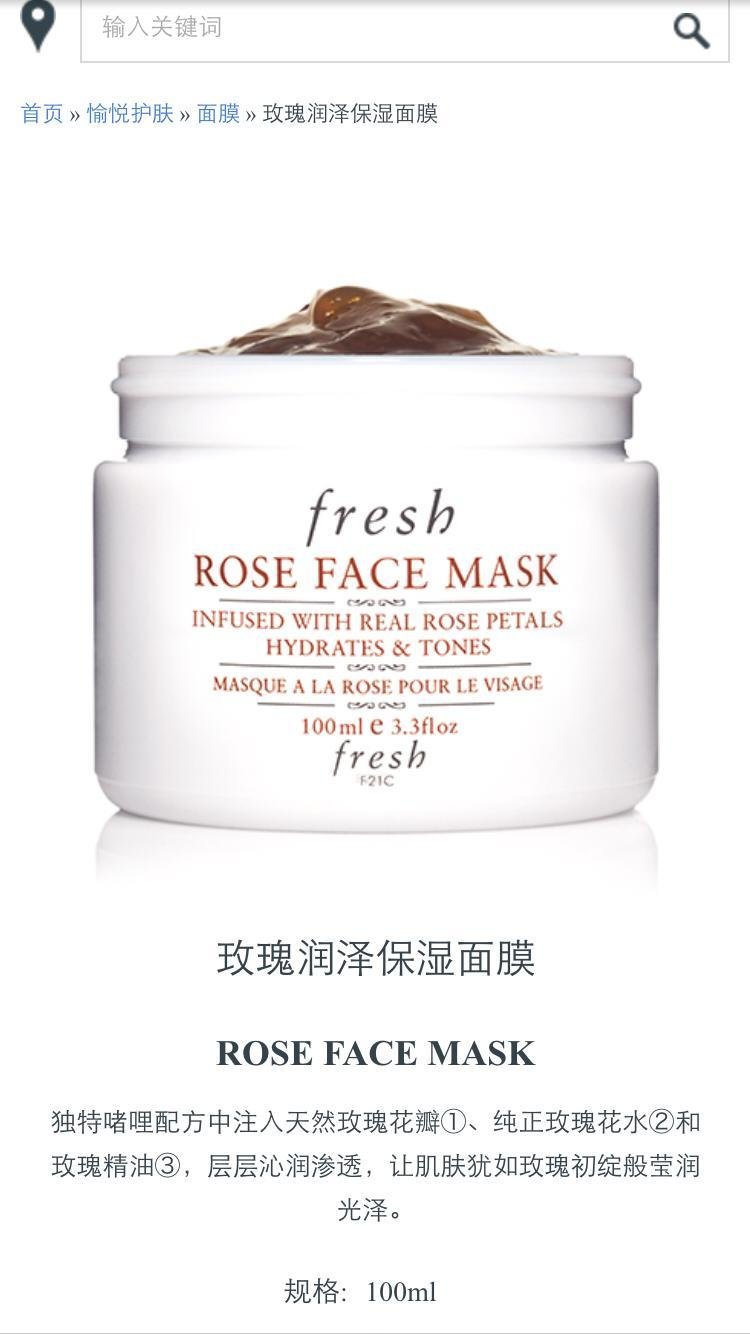 Fresh· 玫瑰润泽保湿面膜 ¥499 100ml 拼邮~