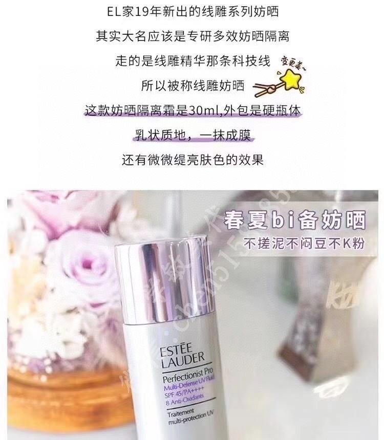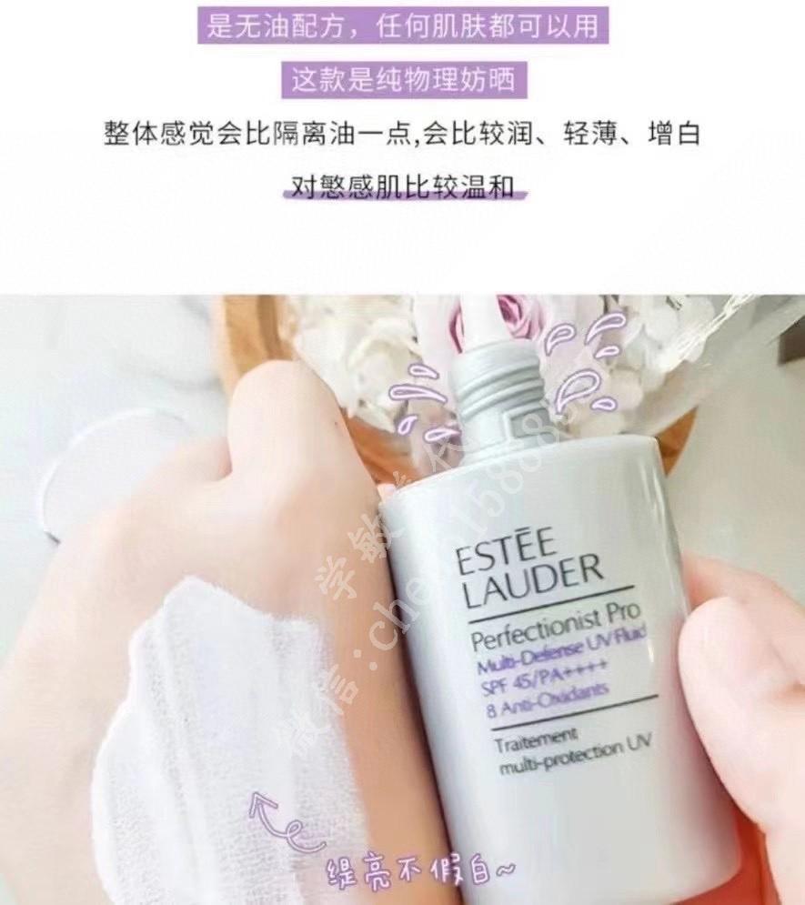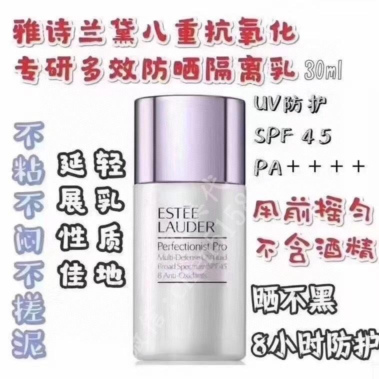 美版雅诗兰黛线雕防晒~八重抗氧化,轻薄不闷痘 ,不含酒精黑科技防晒霜【物理防晒45倍+隔离+线雕+八重抗氧化+提亮肤色 】无油配方。含有强效保湿成分。使用方法:滴在手心,在手心上打圈,再涂在脸上!