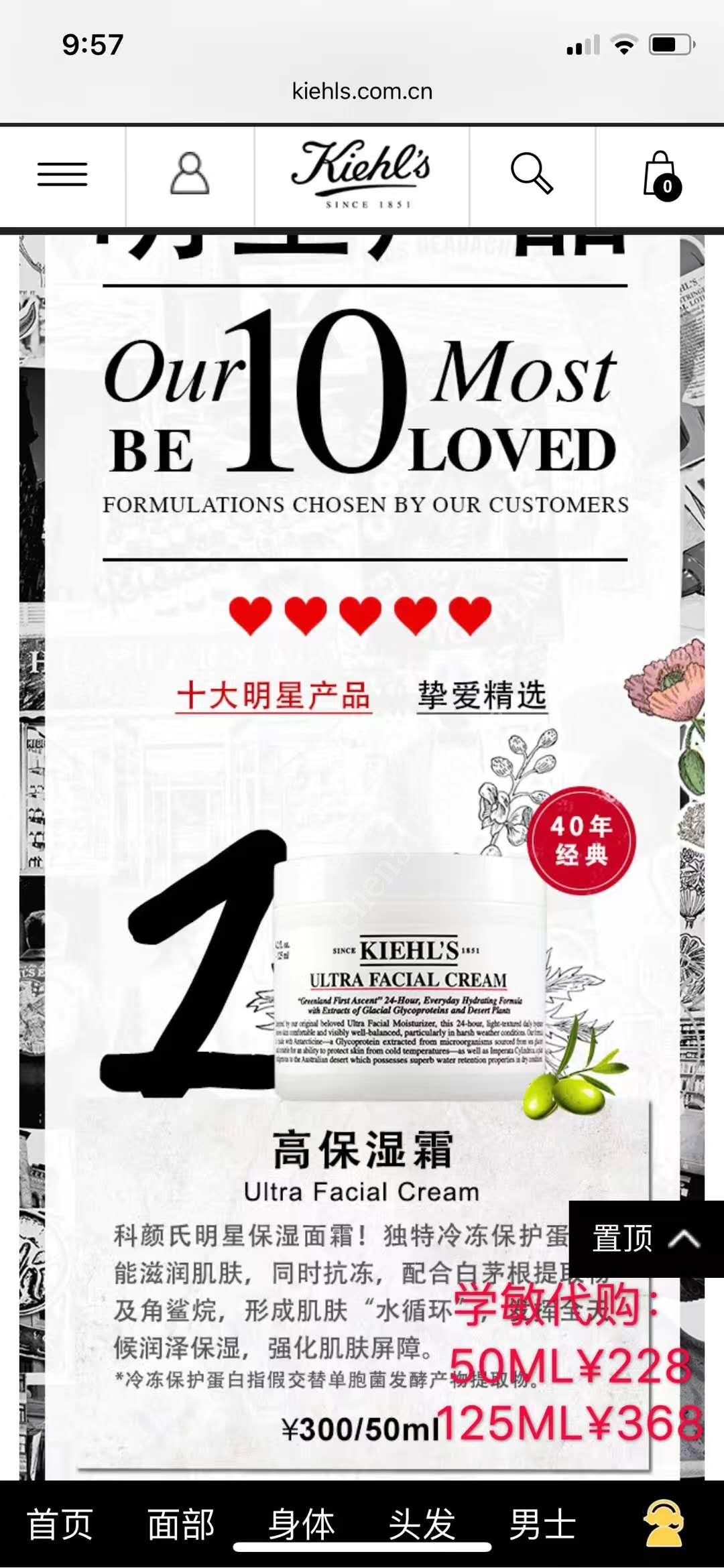 Kiehl 's科颜氏高保湿面霜