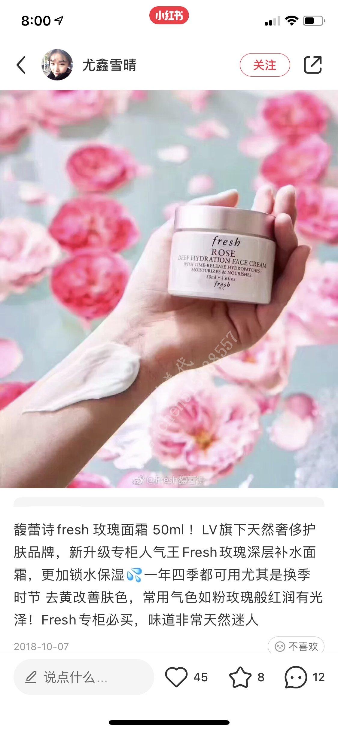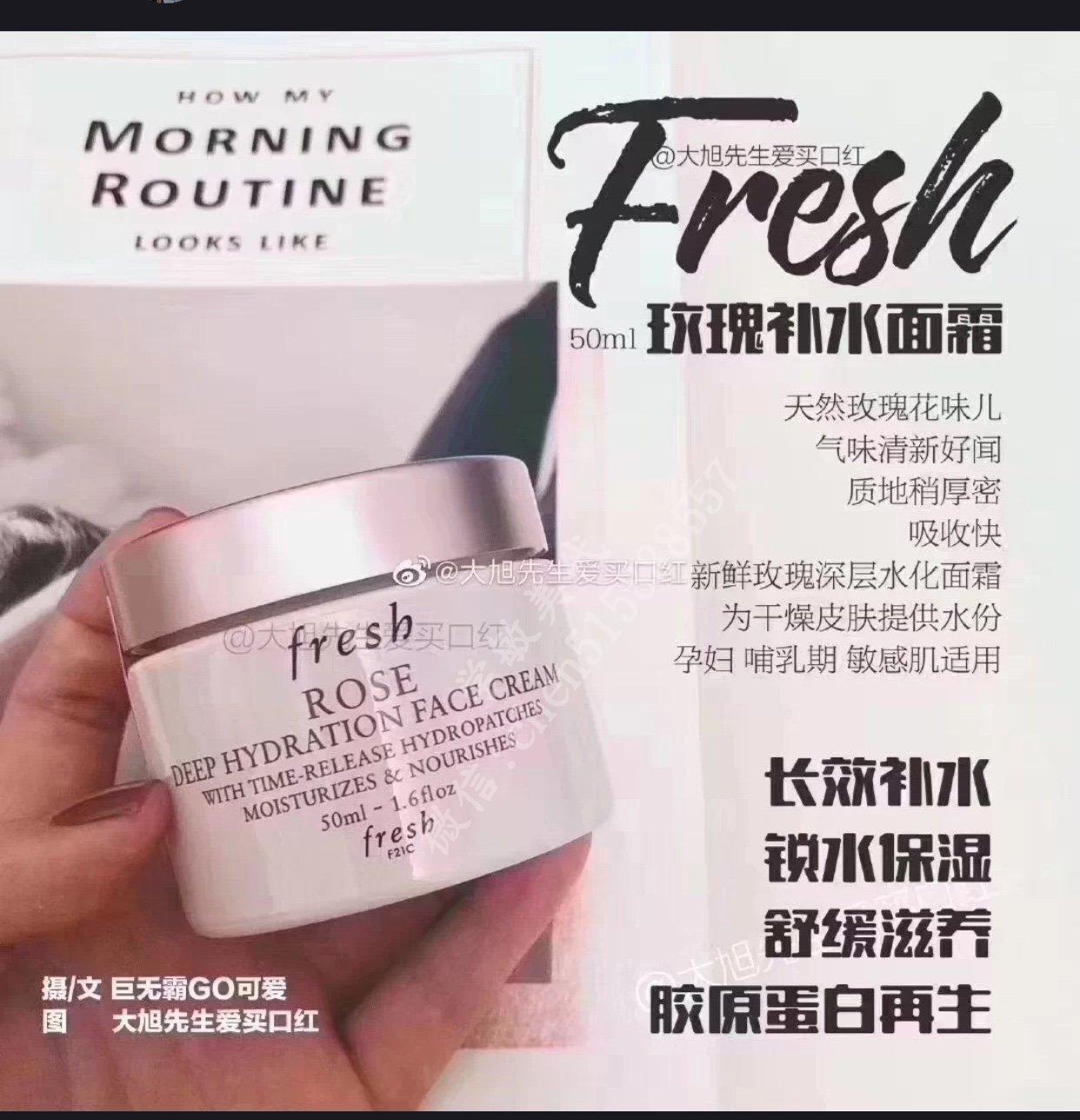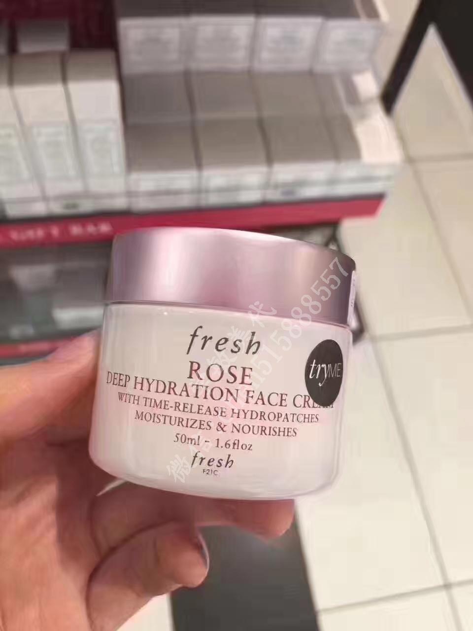 丝芙兰折扣~fresh系列~ 玫瑰面霜深层补水保湿,纯天然,孕妇可用,质地清爽,滋润补水,不粘腻~为肌肤带来24小时长效深层滋润,里面加入了纯正玫瑰花水,玫瑰花精华油,有效舒缓及滋养肌肤~锁水保湿~让肌肤恢复水润光泽~ 50ML,100ML 任意护肤品件美国直邮