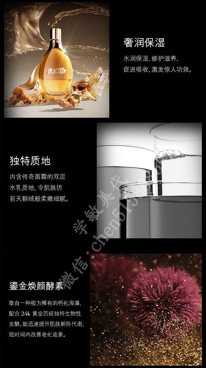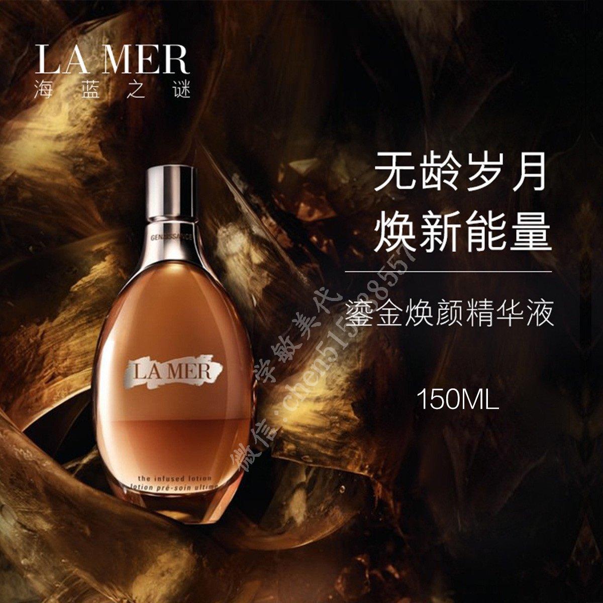 Lamer 海蓝之谜 鎏金焕颜精华液150毫升。。紧致提升,柔嫩肌肤,修护滋养。。。内含精华面霜的双层水乳质地,令肌肤仿若天鹅绒般柔嫩细腻。 无龄岁月,蕴含深海的焕变能量,令肌肤水润、亮泽、柔软而强韧。 促进吸收,激发惊人功效,为激发整个鎏金焕颜系列的焕变能量做好铺垫。。