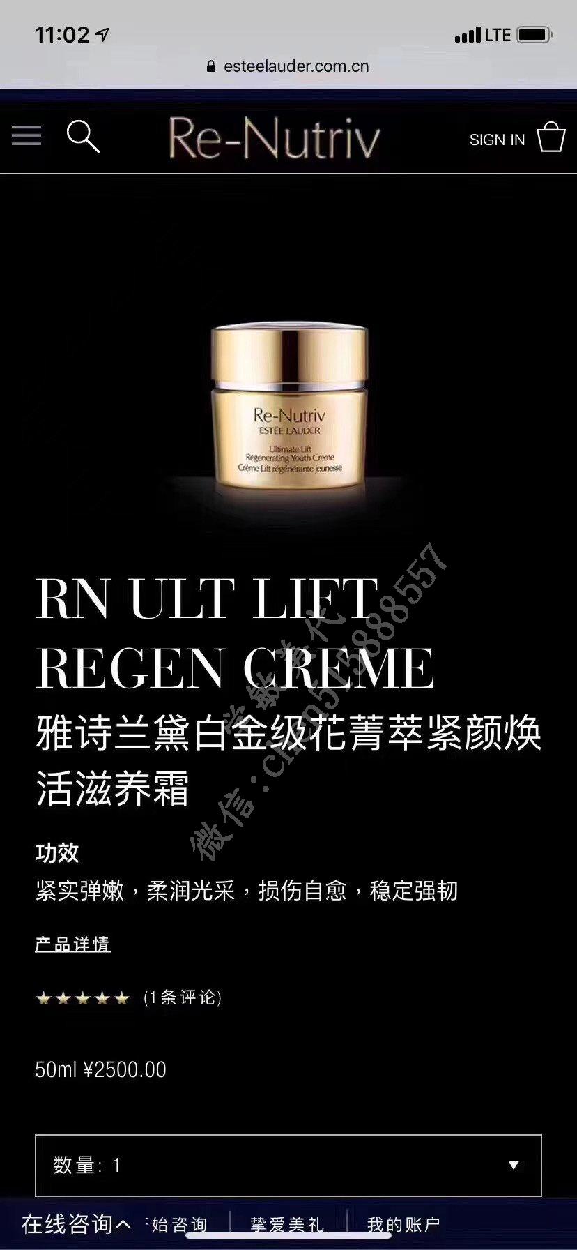 秒杀~大家赶紧! 顶级好货来咯 雅诗兰黛奢华紧颜面霜15mlX2=30ml(一个正装量)一组两个 30ml 美国直邮 雅诗兰黛白金级花菁萃紧颜滋养霜 新品国内刚上市 紧致弹嫩润透肌底 好用没得说。专柜50ml售价$332美金,国内卖2500人民币,现在两个15ml等于30ml 价值人民币1500 这个面霜超级好用