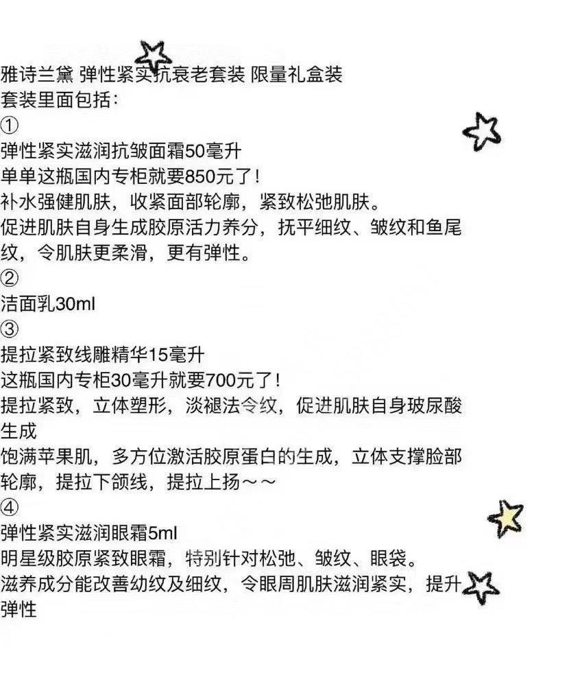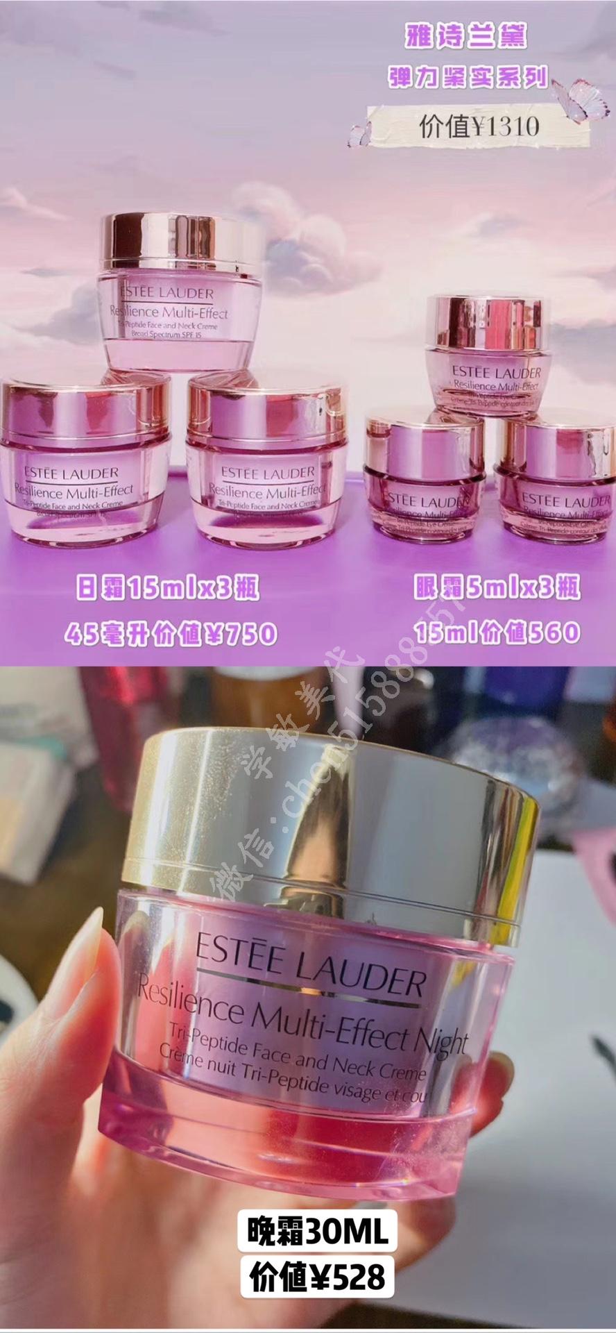 美版专柜~雅诗兰黛多肽超值套装,多肽系列主打紧致提拉,提拉紧实,充盈胶原蛋白,塑紧弹性纤维,让肌肤更立体,紧致!而且日霜自带15SPF防晒 包括: 多肽弹力日霜45ml(15mlx3瓶)价值¥750+ 多肽眼霜15ml(5mlx3瓶)价值¥580 +多肽晚霜30ML,价值¥528+ 一个精美化妆包 整套价值1900,现在促销,美国直邮