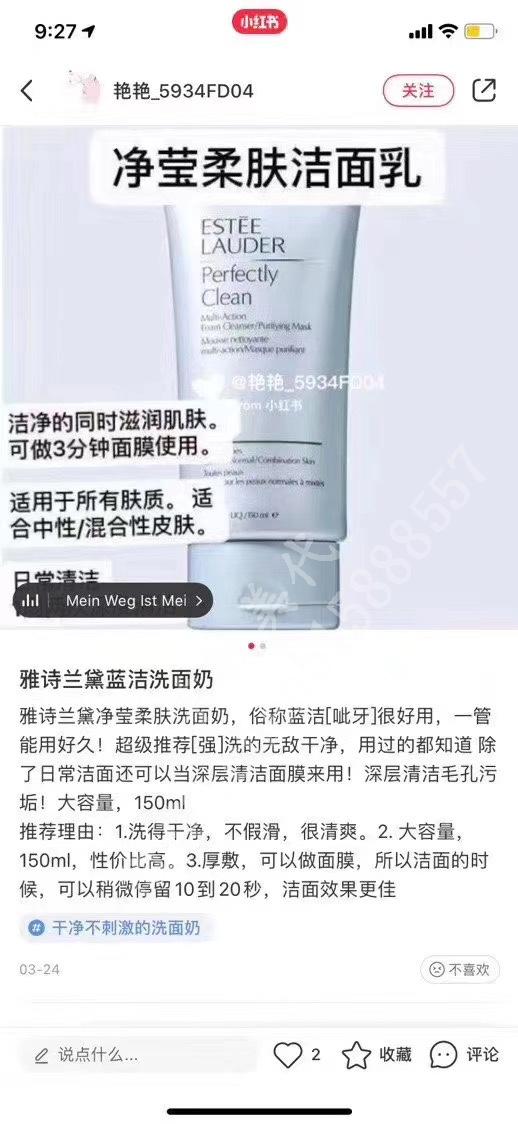 美版雅诗兰黛蓝洁面,薄涂是洗面奶,厚涂停留5分钟就是面膜,所以叫做二合一洁面!官网评价5分! 【洗面奶+面膜二合一】150ml,深层清洁毛孔污垢温和滋润洁净,除了日常洁面还可以当深层清洁面膜来用,一举两得!拼邮包邮