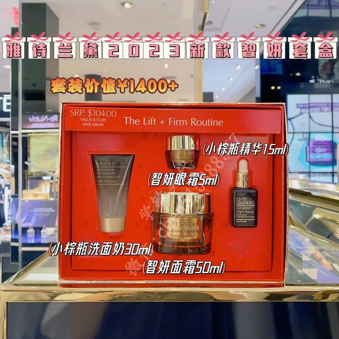 2023年最新estée lauder全新多效智妍面霜套装,美版的全新第二代胶原霜雅诗兰黛真的太好用,细纹紧致塑颜这个礼盒套盒送人也好看 套装包括: 多效智妍面霜正装50ml(国内价值890) 智妍眼霜5ml(国内15ml价值210) 第七代小棕瓶面部精华15ml(价值320) 新版小棕瓶洗面奶30毫升(价值¥80) 精美化妆包一个!总价值超¥1400+
