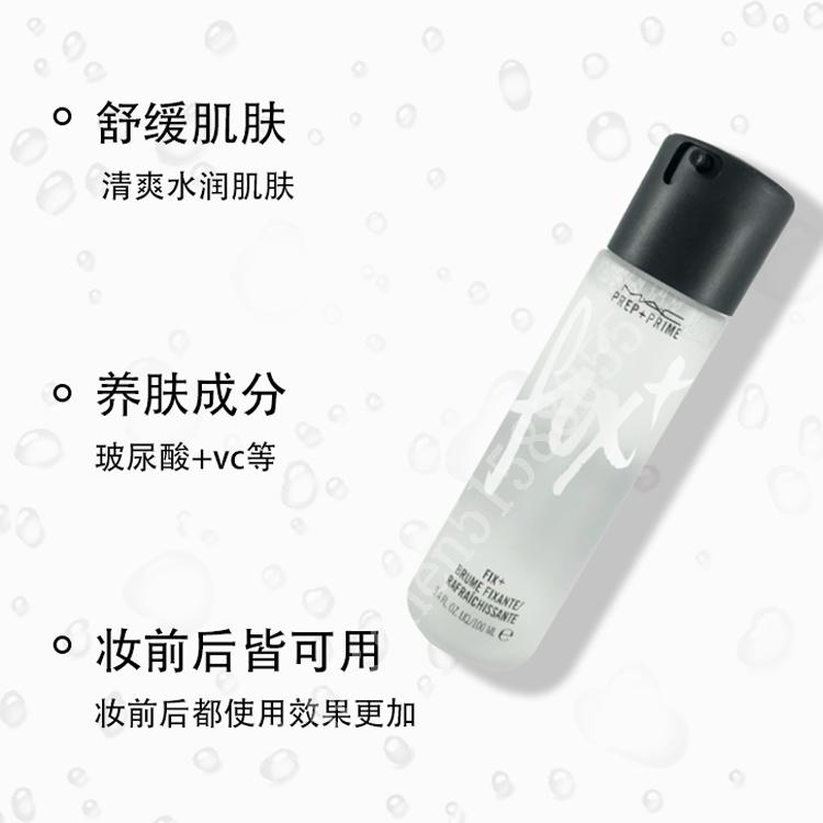 MAC/魅可Mac fix+多用保湿喷雾定妆喷雾套盒 净含量:100ml*2瓶 定妆神器!让粉底贴在脸上跟定海神针似的……夏天脱妆?没有的事,你用MAC定妆喷雾试试。使用的时候,距离脸15-30cm手持,喷头微微向上倾斜,这样出来的喷雾超级绵密细腻,能均匀地落在脸上,十几个小时妆容还持久不晕染,爱了爱了 反正定妆喷雾你得有才行!拼邮回