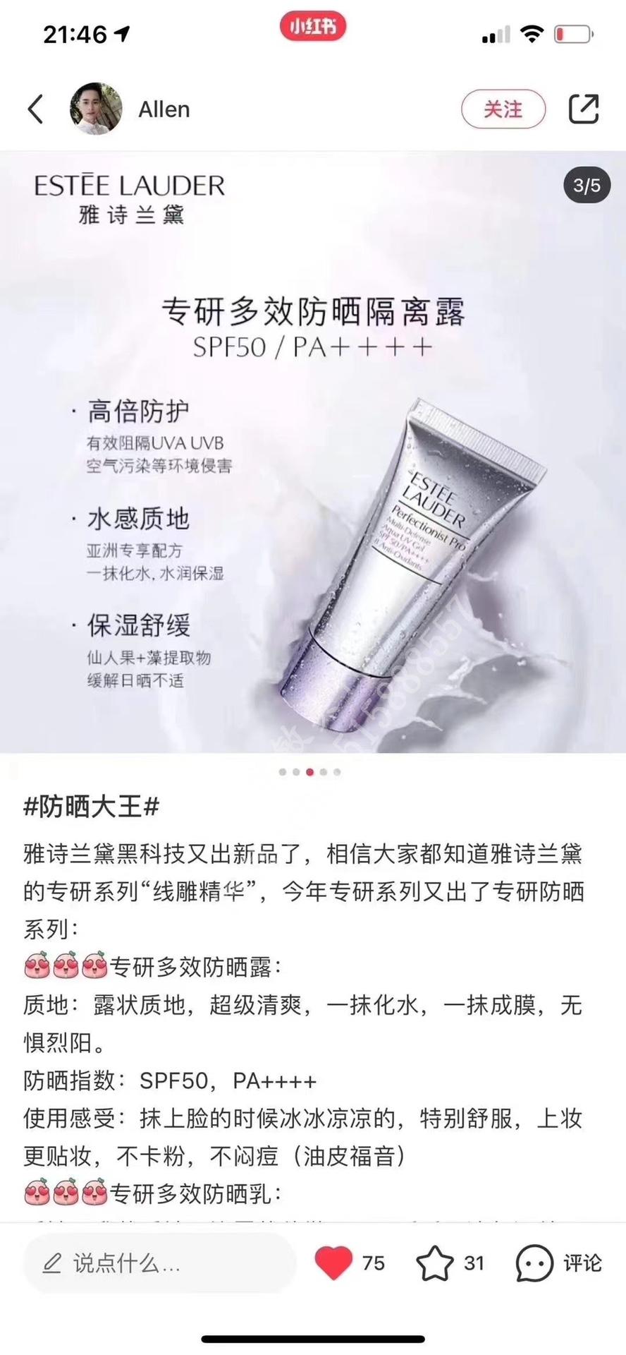 夏天美白防晒要跟上! 雅诗兰黛新款线雕专研多效防晒隔离露30ml 清爽无油妆前乳,非常适合干皮和混油皮用,黑科技防晒霜‼️【物理防晒50倍+隔离+线雕+八重抗氧化+提亮肤色 】孕妇可用