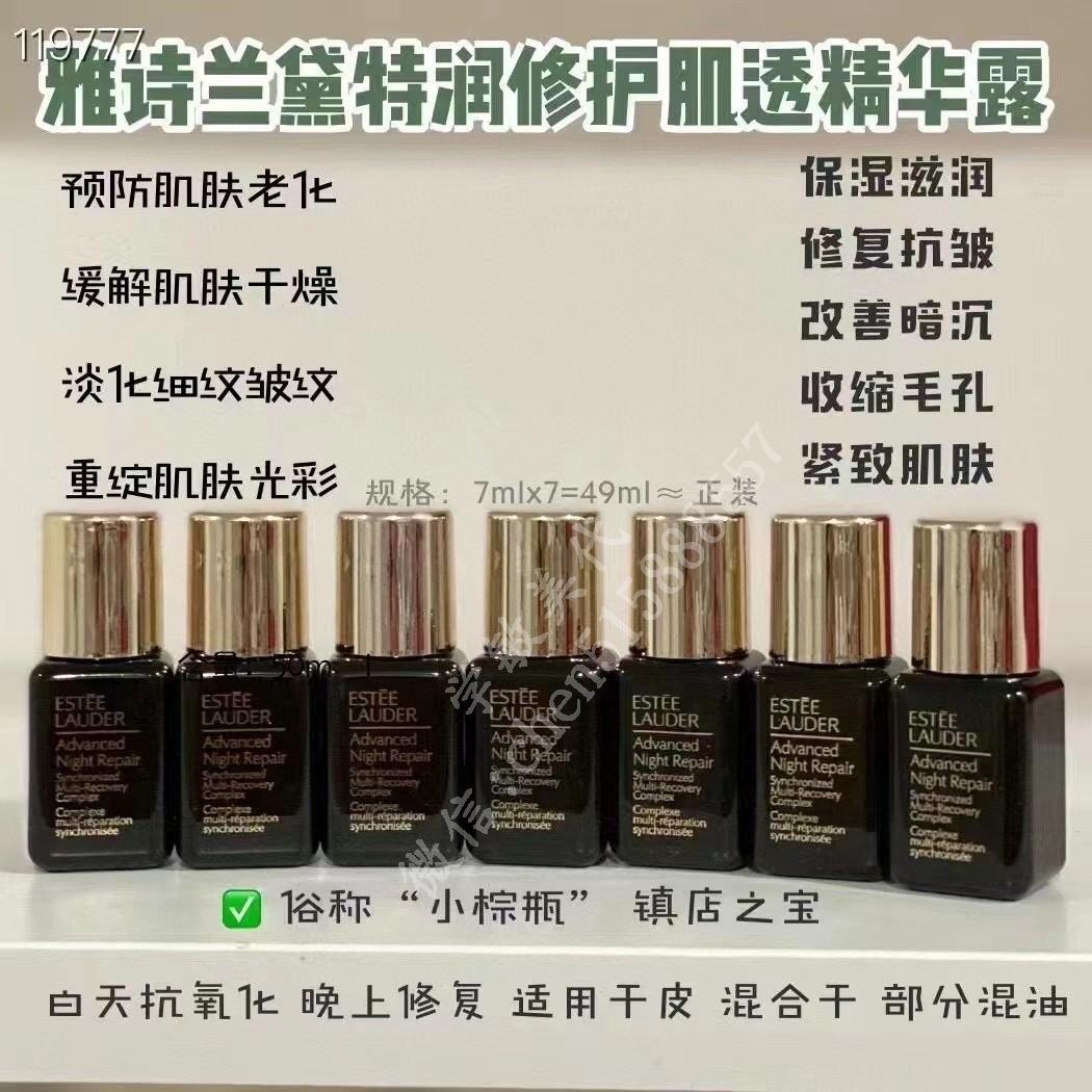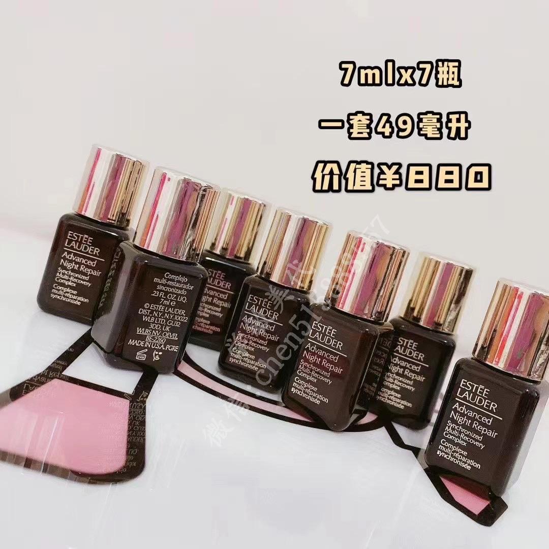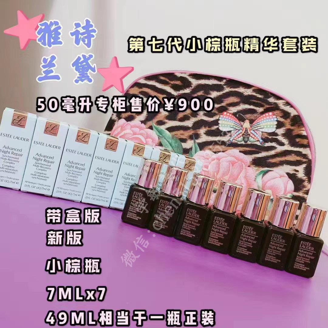 小棕瓶精华旅行装7mlx7瓶 49ml Estee Lauder雅诗兰黛 第七代小棕瓶精华 全新第七代小棕瓶。包装升级,耀世而铸造。 科学家发现:75%的老化,源自后天影响。 创新CHRONOLUX Power Signal时钟肌因信源科技。滴滴精粹,日夜修护。 同步时钟肌因节律,日间防护,夜间修护。加速肌因修护,激发胶原新生,改善肌肤后天老化问题。 每次一滴管,愈见紧致弹润。 高渗透,更柔润。1滴管,保湿+198%。 淡纹路,更紧致。3周,加速淡纹+25%。 焕弹性,更弹润。一瓶,细腻毛孔。专柜50ml900