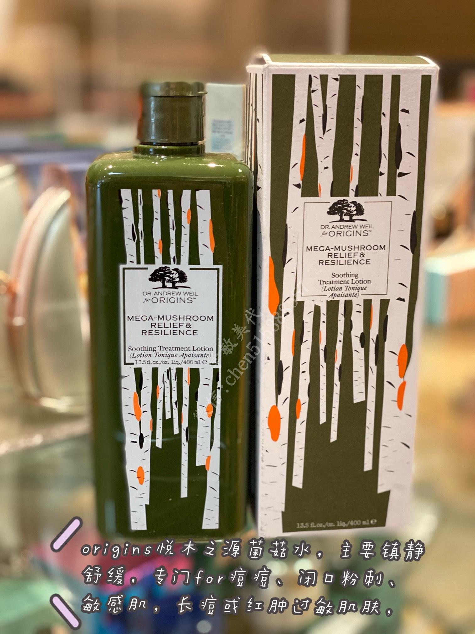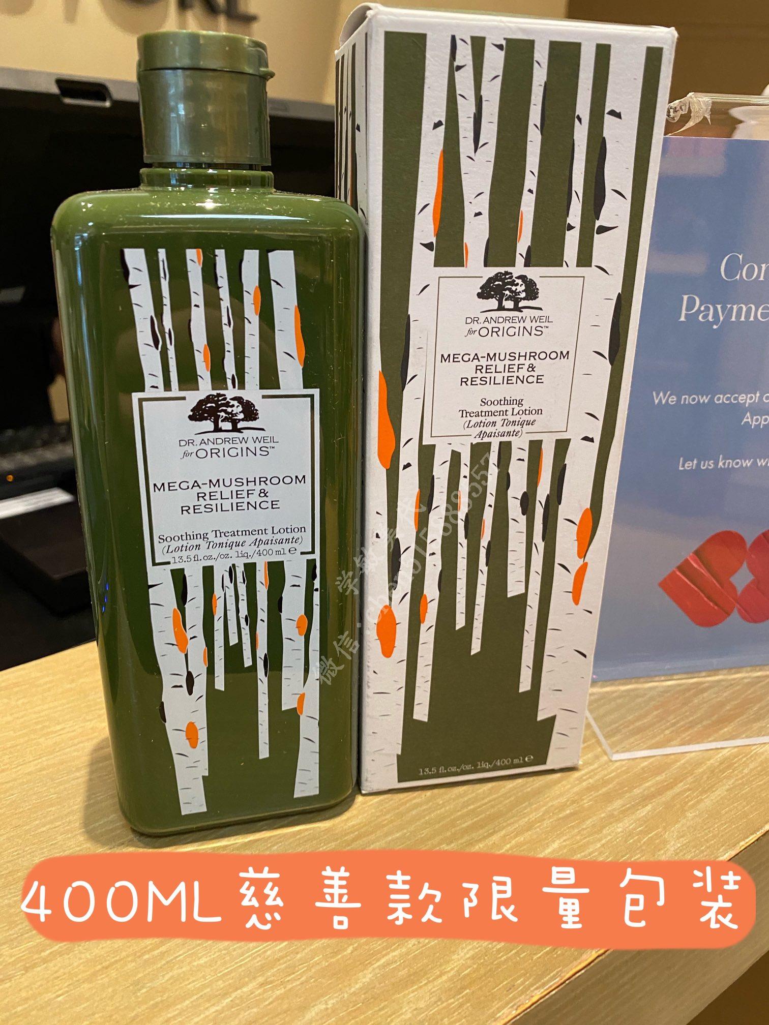 origins悦木之源菌菇水 限量慈善款包装400ML大瓶装, 主要镇静舒缓,专门for痘痘、闭口粉刺、敏感肌,长痘或红肿过敏肌肤,强化肌肤自愈力,消除肌肤发炎现象,改善毛孔,泛红,敏感,干燥,粗糙等肌肤问题,是痘痘肌,敏感肌,毛孔粗大的必备品
