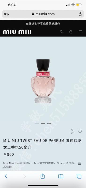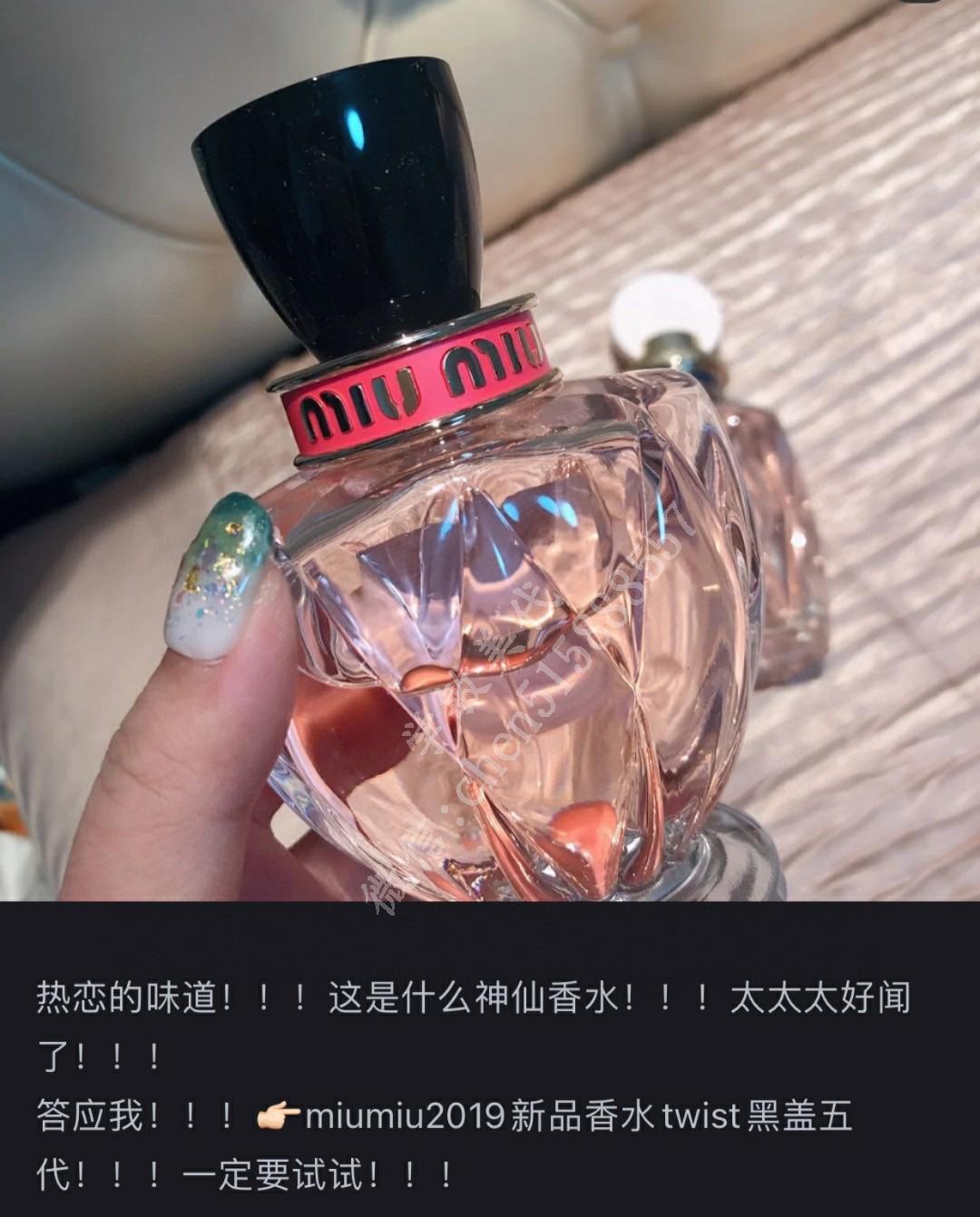 miumiu缪缪粉黛Twist香水 浓香EDP 50ml,Miu Miu Twist诠释Miu Miu愉悦的本质,令人无法抗拒! 轻熟少女香调,黑盖搭配粉瓶像一个爱心,专属女性温柔感!颜值极高,味道太太太好了,精致女神必备啊! 前调:苹果花香 中调:粉红麝香 基调:零陵香,雪松香