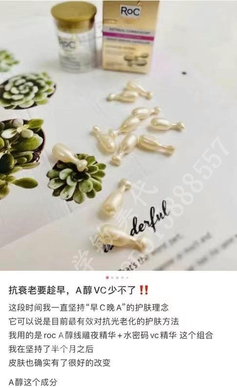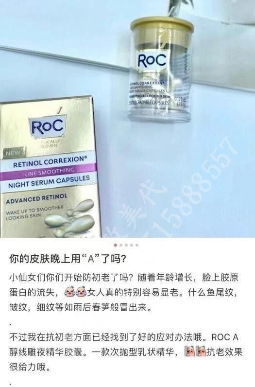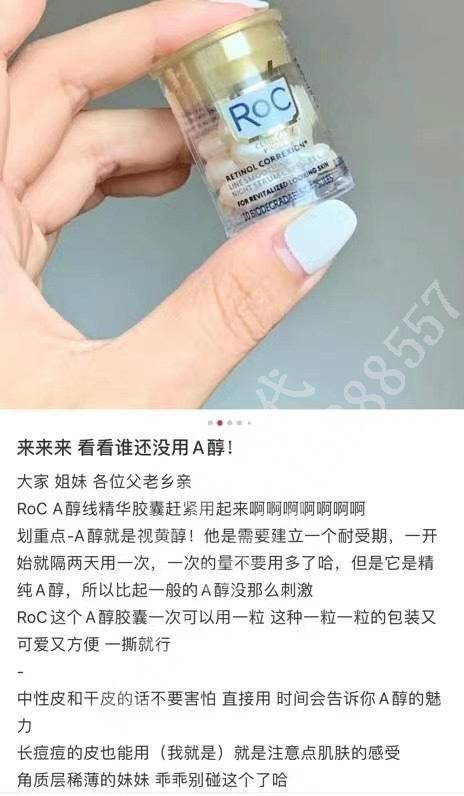 Roc洛克A醇线雕金胶来了,有效提亮肤色淡化细,精华记得每天一定要用,它的质地是油状,但是却一点不油腻,轻轻涂抹即可吸收,油皮宝宝们也可以接受,涂上就感觉每个细胞都被滋润了,久旱逢甘霖一般,这款是胶囊设计出门旅游超级方便的,一颗就足够涂抹脸部和脖子,坚持使用,不仅能淡化细纹,还能紧致肌肤!!赶紧一起抗老吧!一板(50粒)
