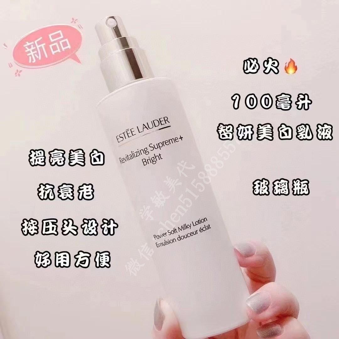 雅诗兰黛全新白胶原乳液100ml 强烈推荐这款,爱惨了。这款的美白抗老效果都很不错,乳液质地好吸收,涂在脸上散发出淡淡的香味,而且不粘腻炒鸡舒服。尤其是熬夜的人,一定要入手这款。里面添加了日本紫珠果精粹,抗氧能力很强,每天使用它美白效果可以说很明显。