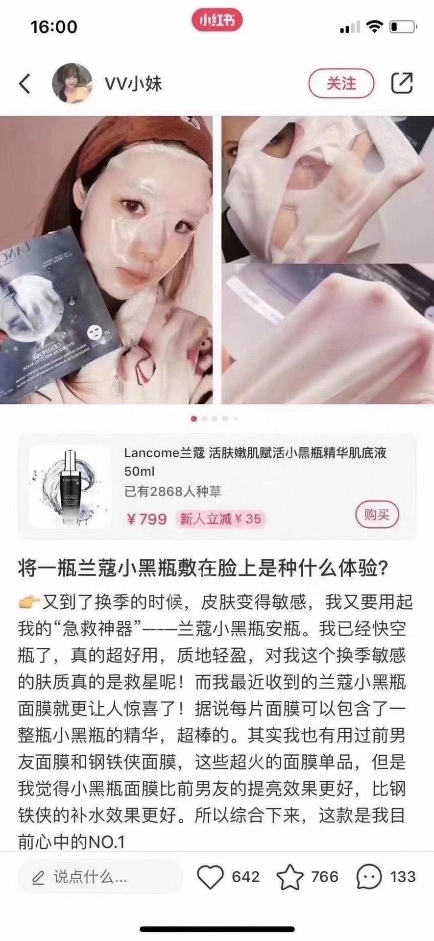 Lancôme兰蔻肌底精华侵润修护面膜 ,一组4片装 一片含几乎一瓶小黑瓶精华, 也称:急救面膜!敷完之后皮肤立刻水嫩饱满,修复肌肤暗沉,细腻毛孔!好评太多啦!