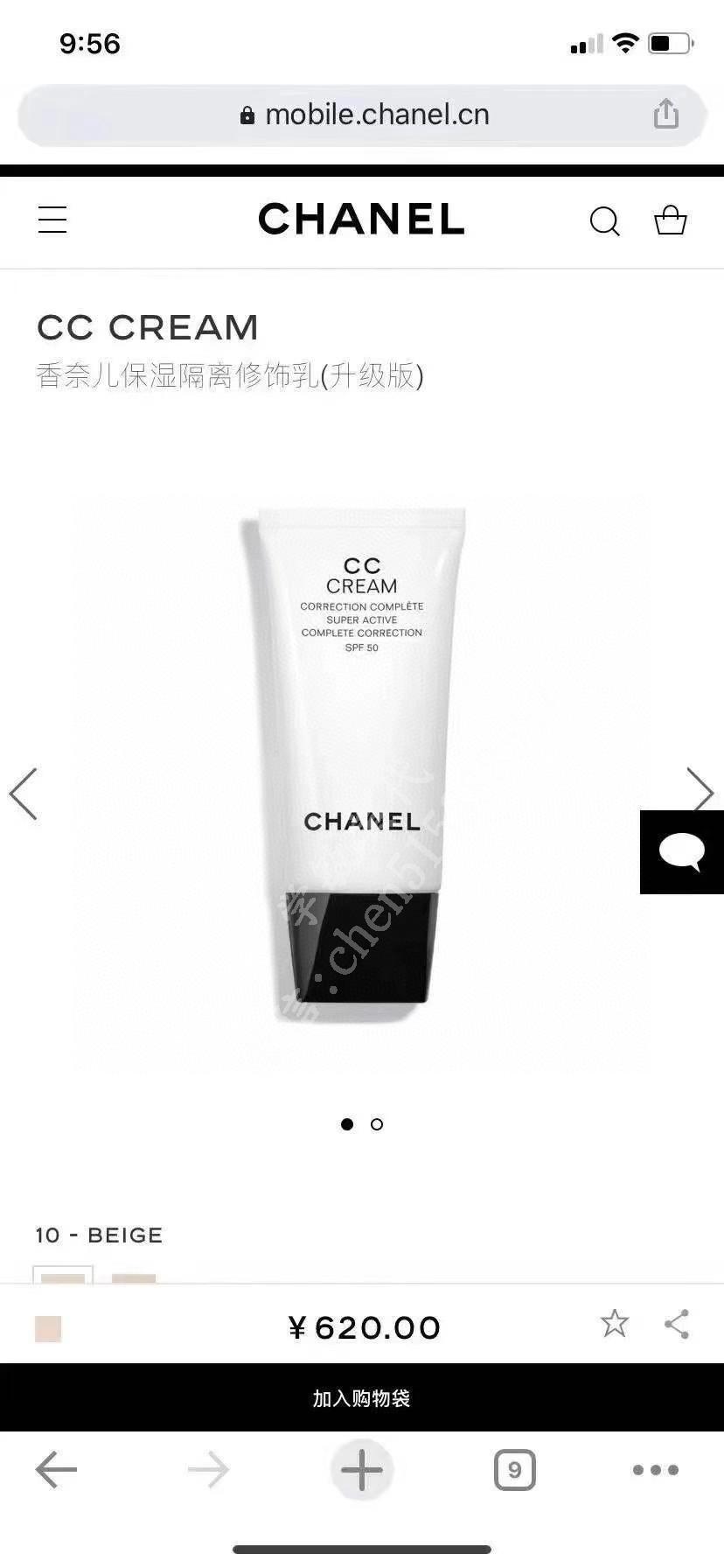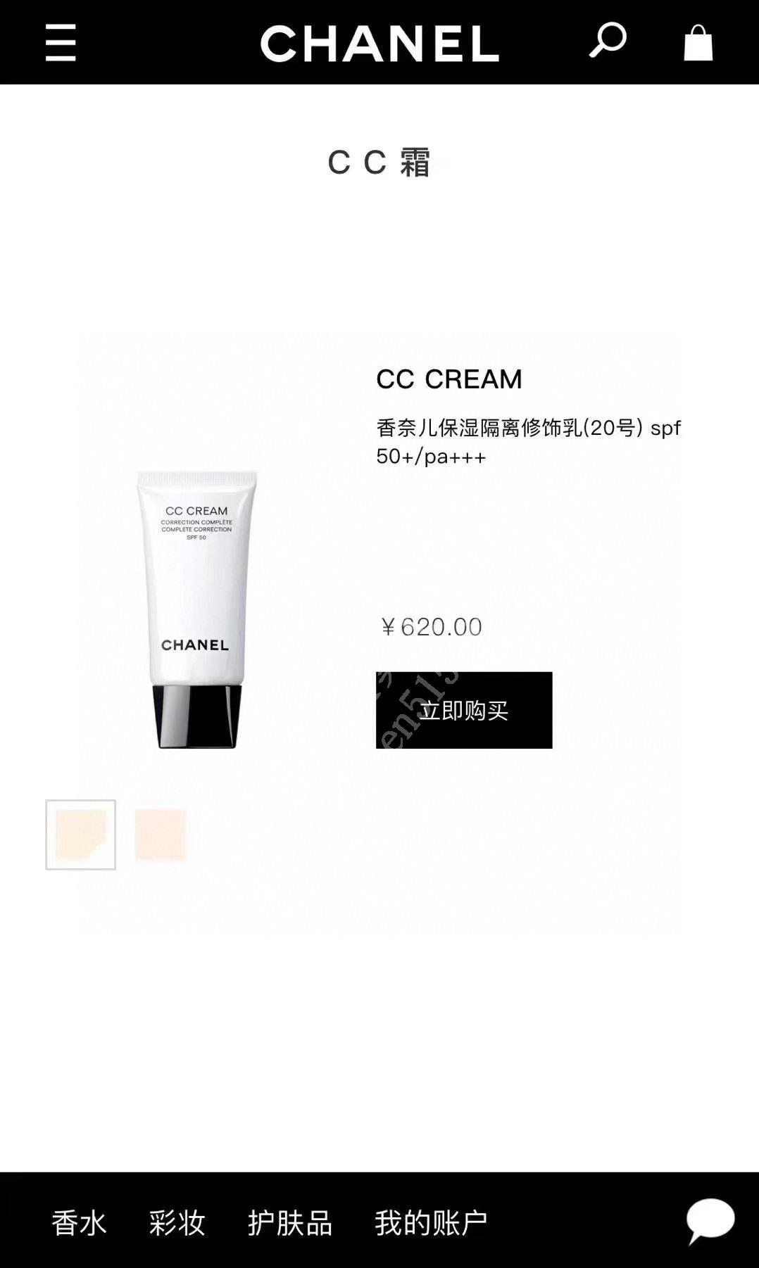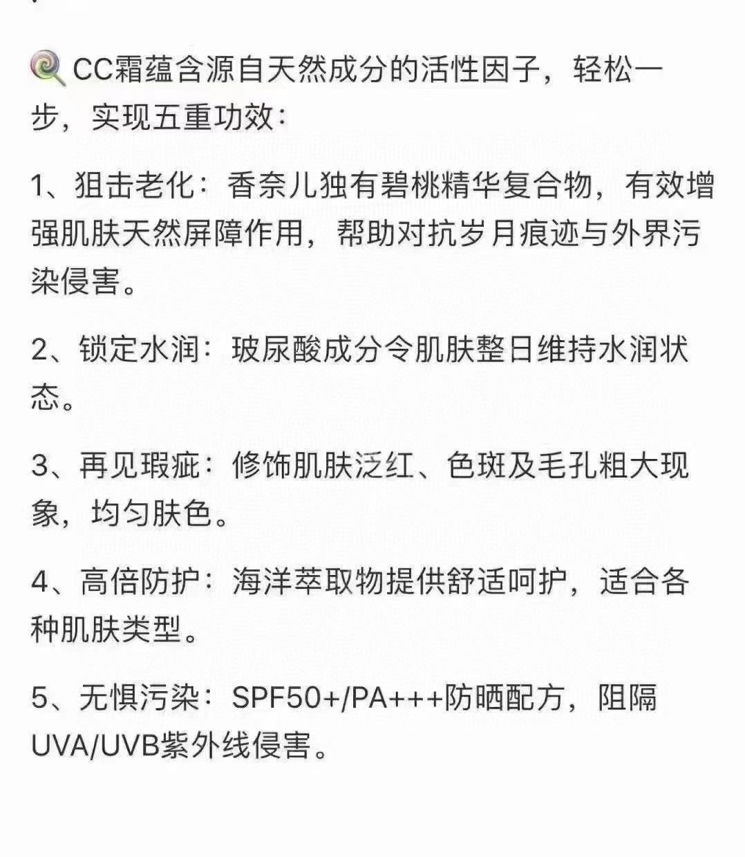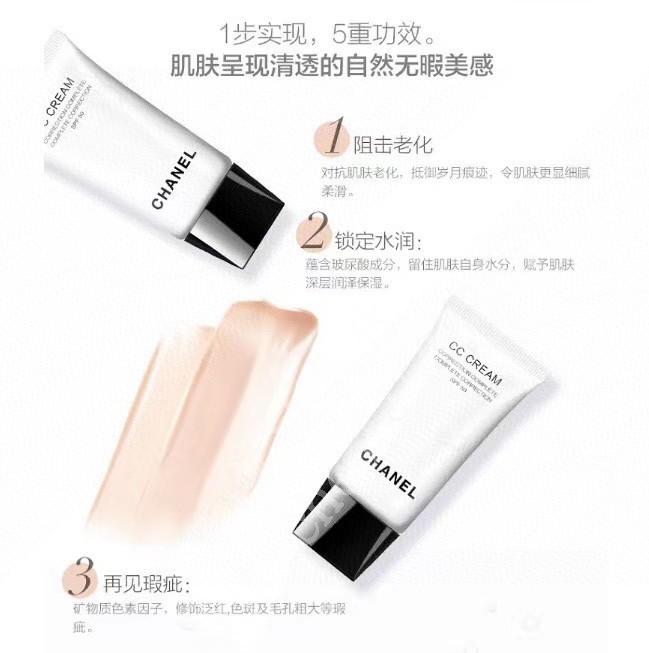 真的无敌好用!这款香奈儿CC霜是50倍防晒!遮瑕能力太好!又不需要打底,保湿效果杠杠的!非常水润!不堵毛孔!香奈儿CC霜5重功效:舒缓、保湿、抗老、隔离、遮瑕!一步到位!一支就搞定! 专柜原价620