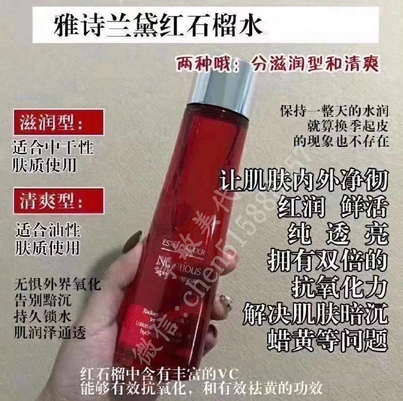 清爽版新款雅诗兰黛红石榴水200ml 正装, 最适合亚洲人的系列 去黄 排浊 提亮 光下可以看到满满都是气泡的营养精华水 全新升级版比旧版在排浊功效上进一步提升,更有效加强皮肤排浊。使用下来也一扫往日的暗沉和疲惫,肤色越明亮均匀,被净化的好肤质才能获得红润的好气色