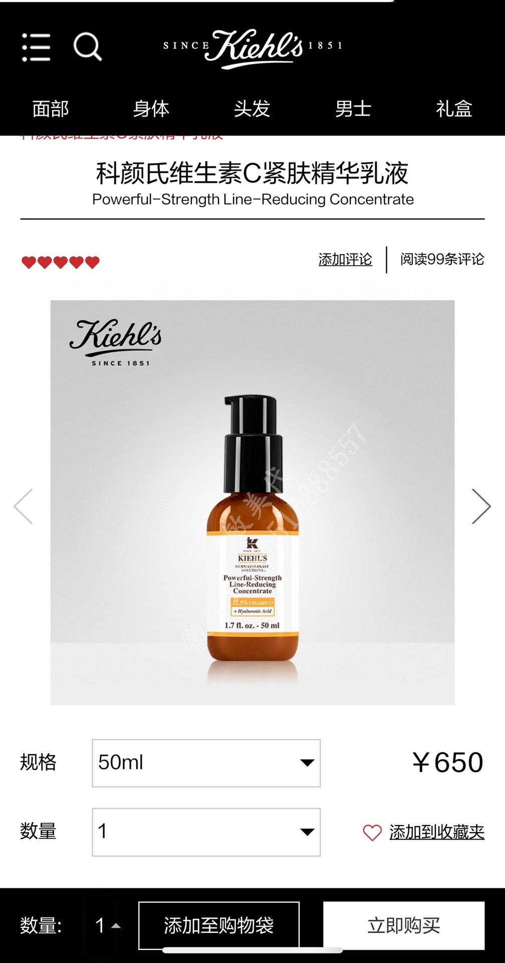 科颜氏正装维C玻尿酸精华50ML(国内卖¥650)