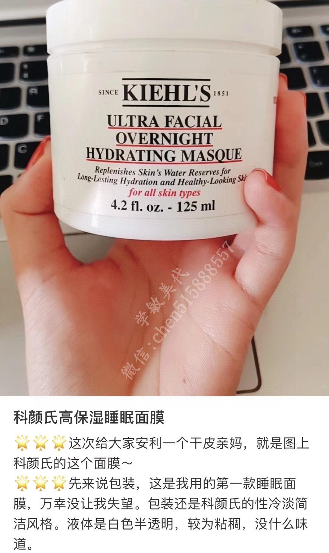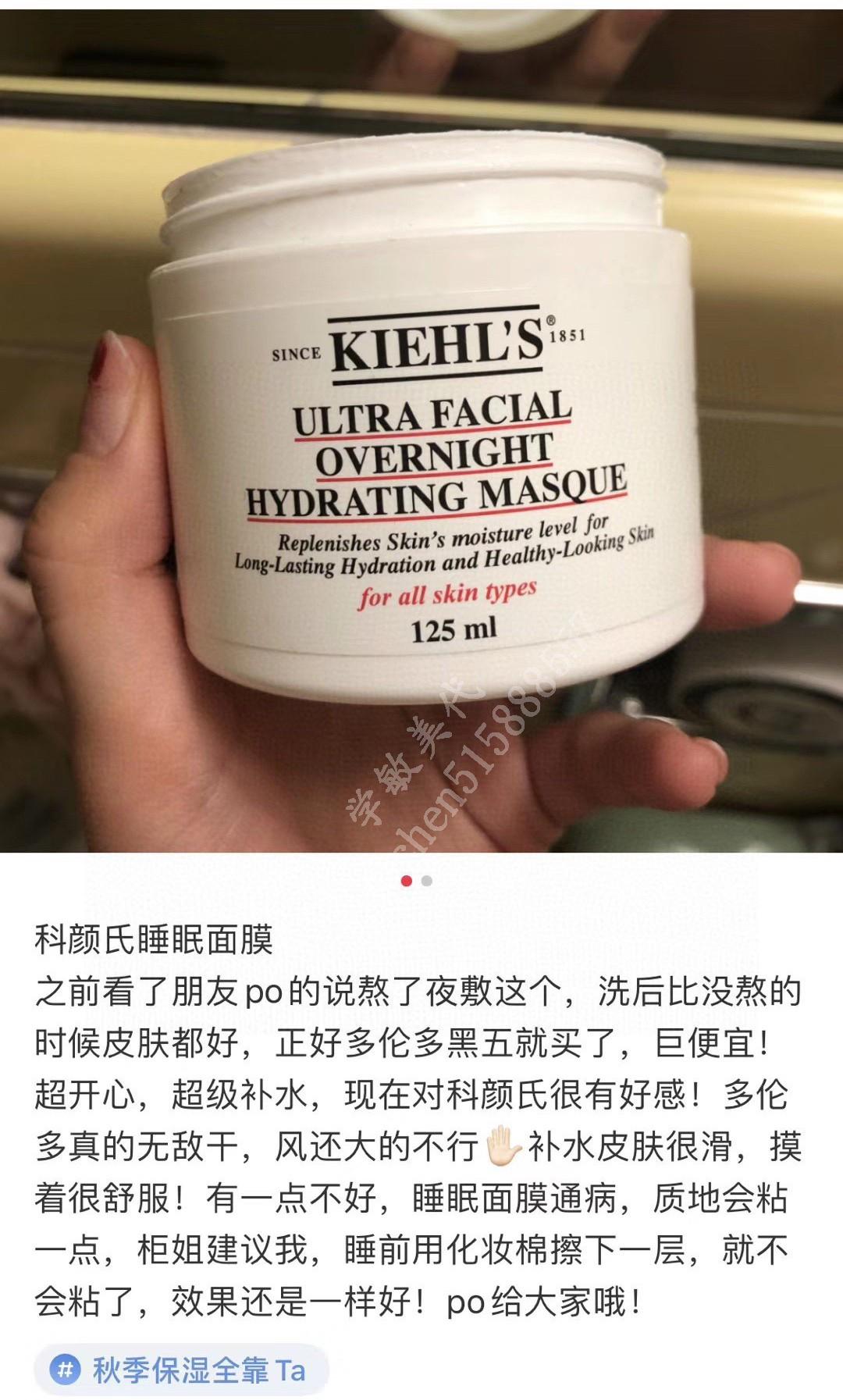 Keihls 科颜氏特效高保湿睡眠面膜正装100ML,晚上睡前敷一层非常方便~在睡眠期间,为肌肤进行强效深层补水,提升肌肤天然锁水能力,防止水份流失,保持细胞水份平衡,增加肌肤吸水及锁水功能~玻尿酸成份,无硅无防腐剂无香精无色素!