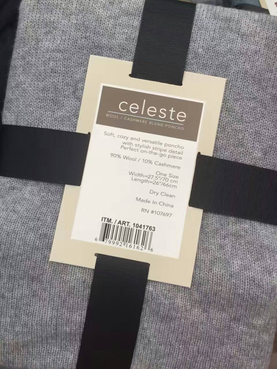 不能错过的绝世好东东!Celeste羊毛羊绒披肩斗篷被全美国的代购已经疯抢的一塌糊涂,随时都会断色的款..喜欢的下一定要快狠准~超级百搭款,90%羊毛+10%羊绒,真材实料四色可选,面料舒服,手感佳,现在这个年代不披块毯子都不好意思上街呀,哈哈哈[偷笑] 真心话呢,随便套上就非常百搭,又超级显瘦,上身图简直赞爆了,完全不挑人,果断自留啊价格白菜 ¥499/个 【两条¥499】不议价 买单个只能¥280 拼邮拼邮回国