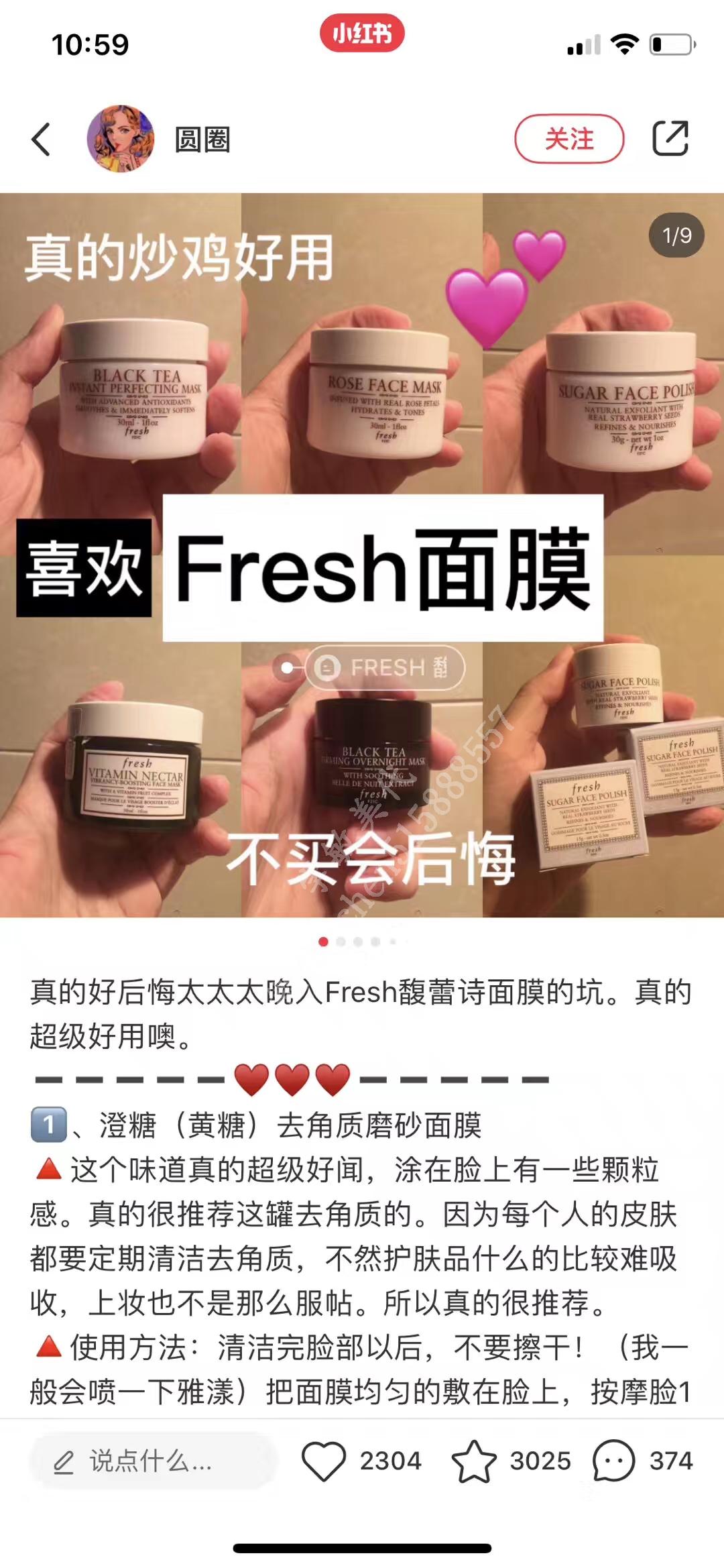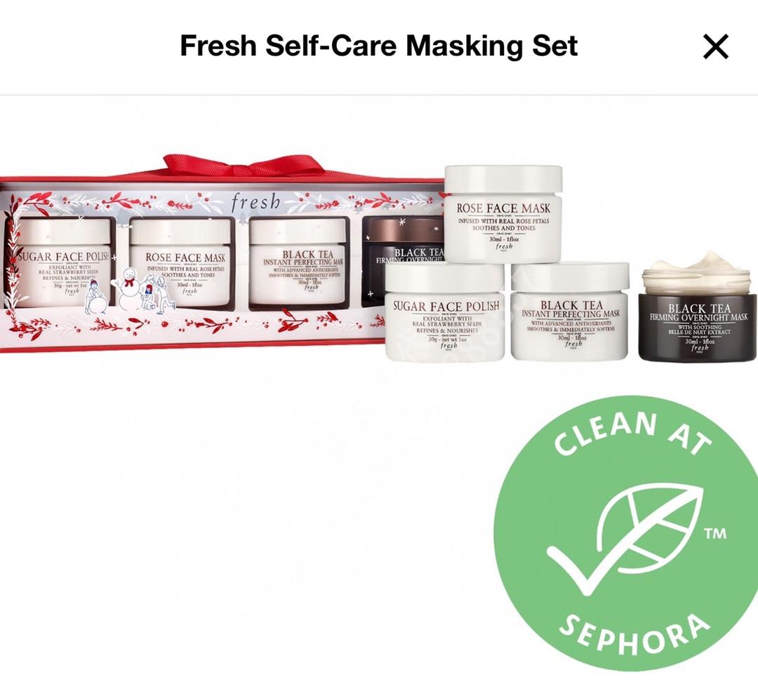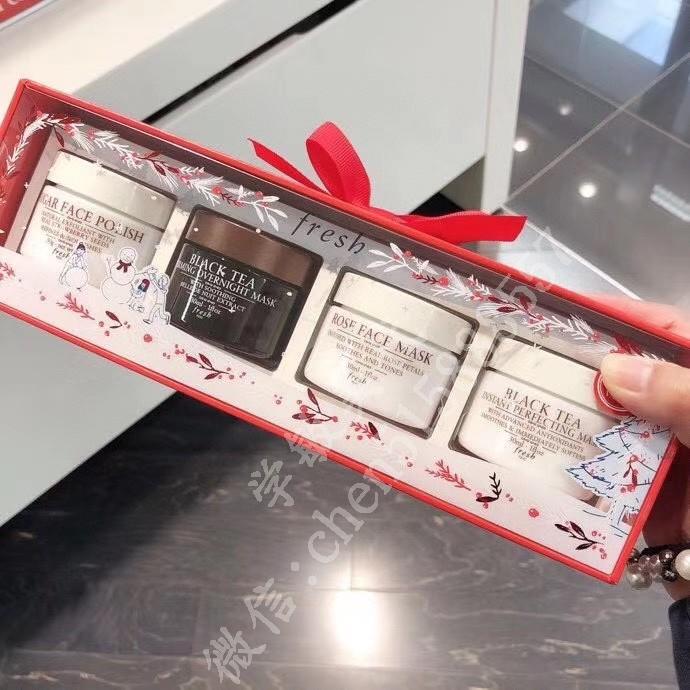 Fresh面膜套装四件套 玫瑰补水面膜+黑睡眠面膜+黄糖磨砂面膜+黑茶紧致面膜, 全部正装每个都是30ml,国内这一套得小一千! Fresh是孕妇跟敏感肌都可以用的牌子