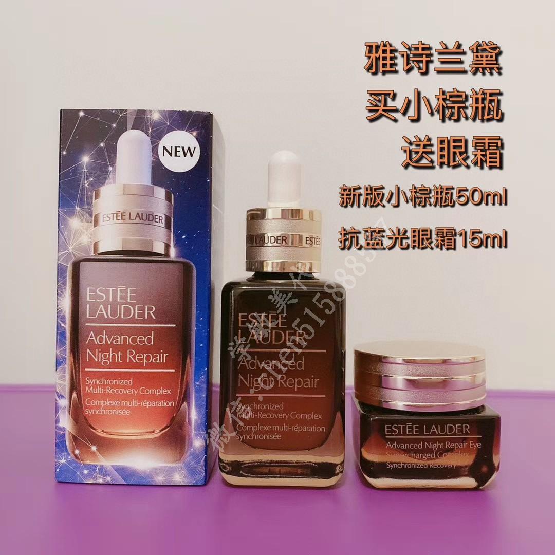每年最火的1+1 雅诗兰黛7代小棕瓶 50ml 15ml抗蓝光眼霜 双胞胎小棕瓶新包装第七代小棕瓶,成分有所添加,添加了线雕精华的提拉紧致效果,一瓶新版小棕瓶帮你搞定修复,提拉紧致,抗皱功效,只会让你用了越来越喜欢,越来越美丽[耶][耶][耶] 国内一瓶50ml/900块,眼霜也得500块 快来找我买最好的美版小棕瓶系列