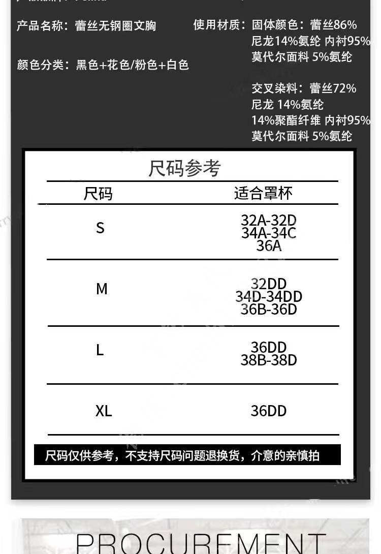 Felina性感无胸垫无钢圈蕾si文胸内衣2件装!!性感又非常小女人[色][色]材质轻薄无负担,手感软糯亲肤。全蕾丝非常精致,背面也美美的,穿透透的衣服或者露背都非常好看白紫和黑灰两组颜色可选,尺码S-XL码 参考尺码图 按照自己的罩杯选择码数!一盒两个装,两种颜色组合